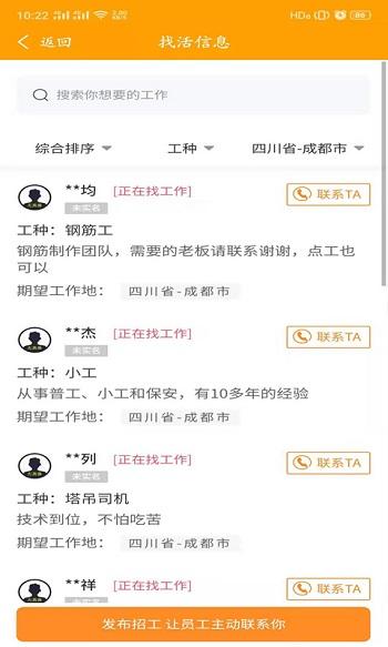 招工分享,各类招工信息都能便捷共享,也让工人能够便捷查看招工信息;